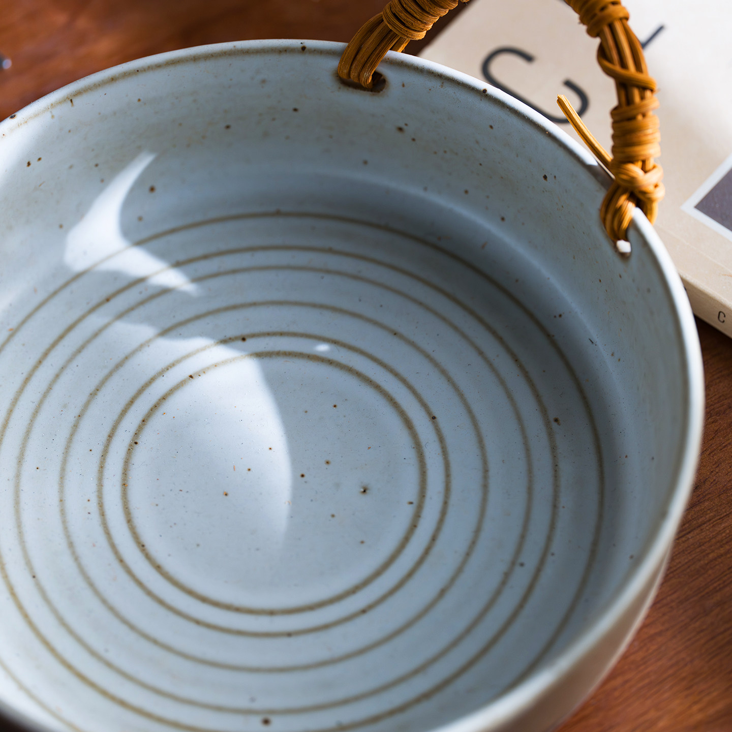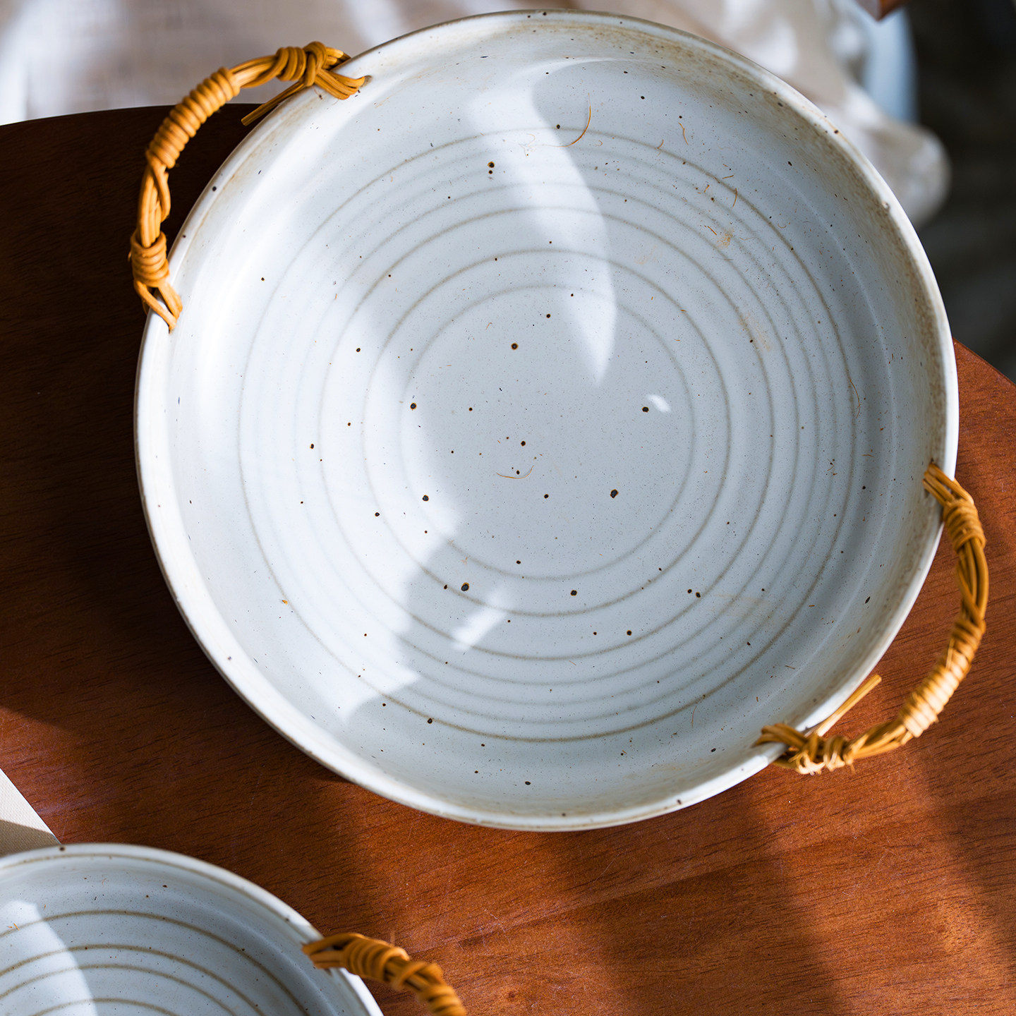 川泽烧日式粗陶双耳提绳深盘汤盘大号菜盘手工果盘轻奢复古螺纹盘
