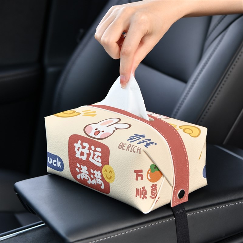 好运满满 车载h纸巾盒创意车内抽纸盒汽车纸巾包扶手箱纸抽盒车用