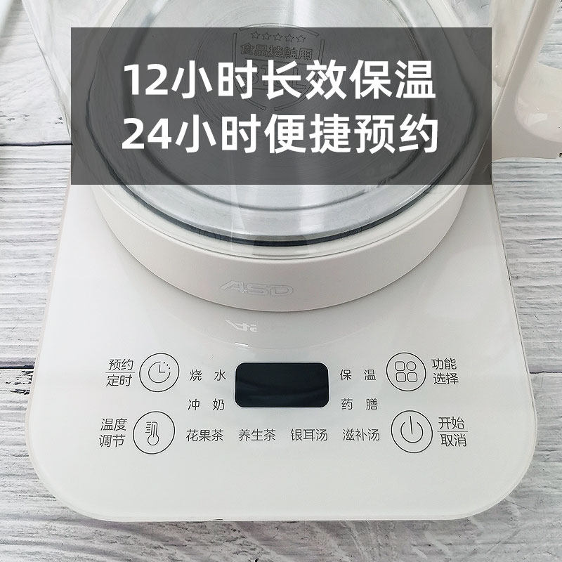 爱仕达都市系列养生壶办公室高硼硅玻璃保温多功能煮茶器烧水壶