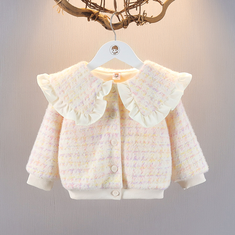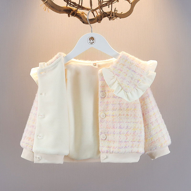 女童秋装女宝宝外套加厚婴儿上衣秋冬天开衫外出服公主加绒毛毛衣