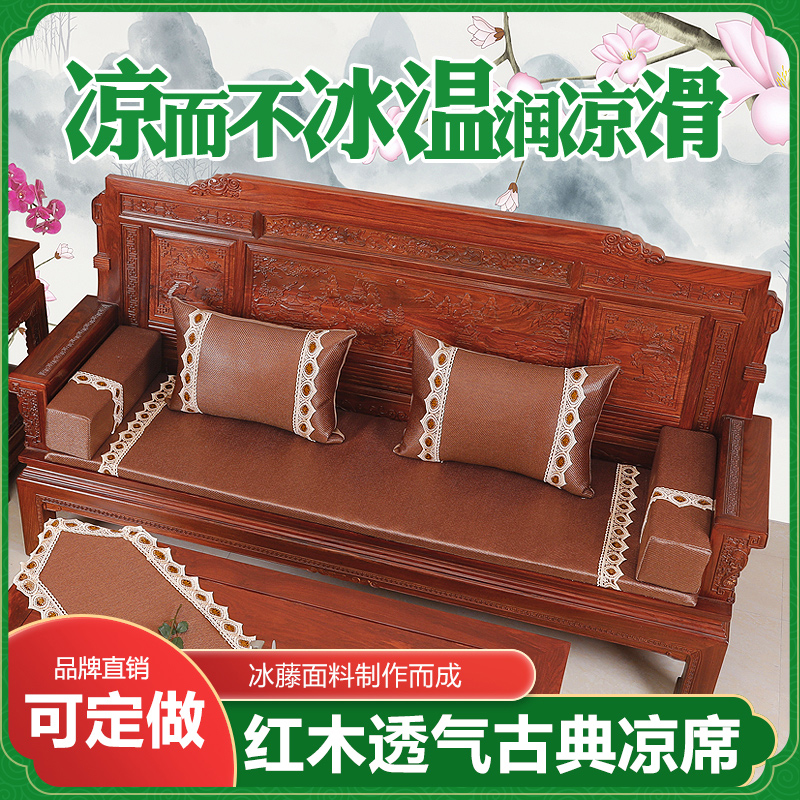 红木沙发坐垫夏季凉席中式实木家俱凉垫套罩冰藤木椅凉垫防滑定做