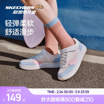 Skechers斯凯奇儿童拼接撞色时尚板鞋春夏女童网面透气运动休闲鞋