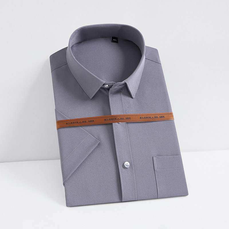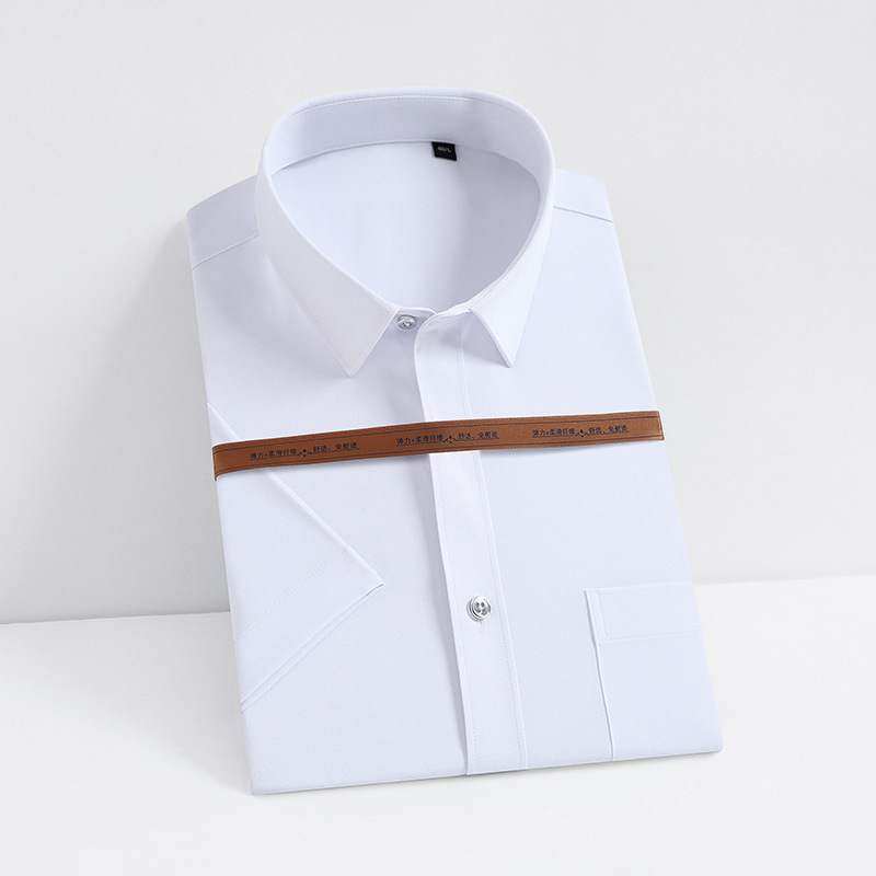 2023夏季白衬衣休闲上衣衬衫男弹力短袖抗皱男装中老年款商务外套