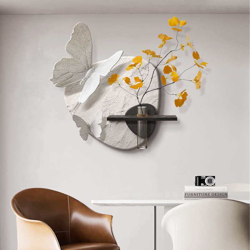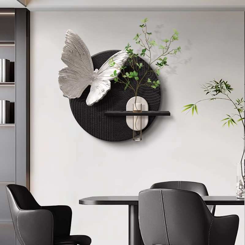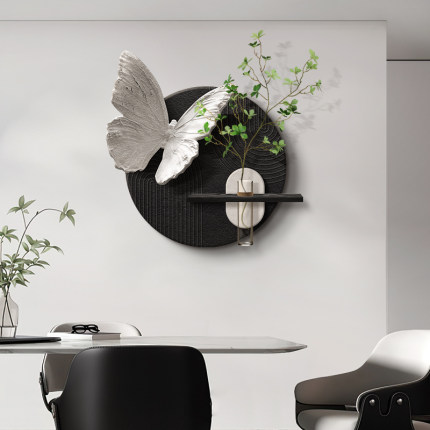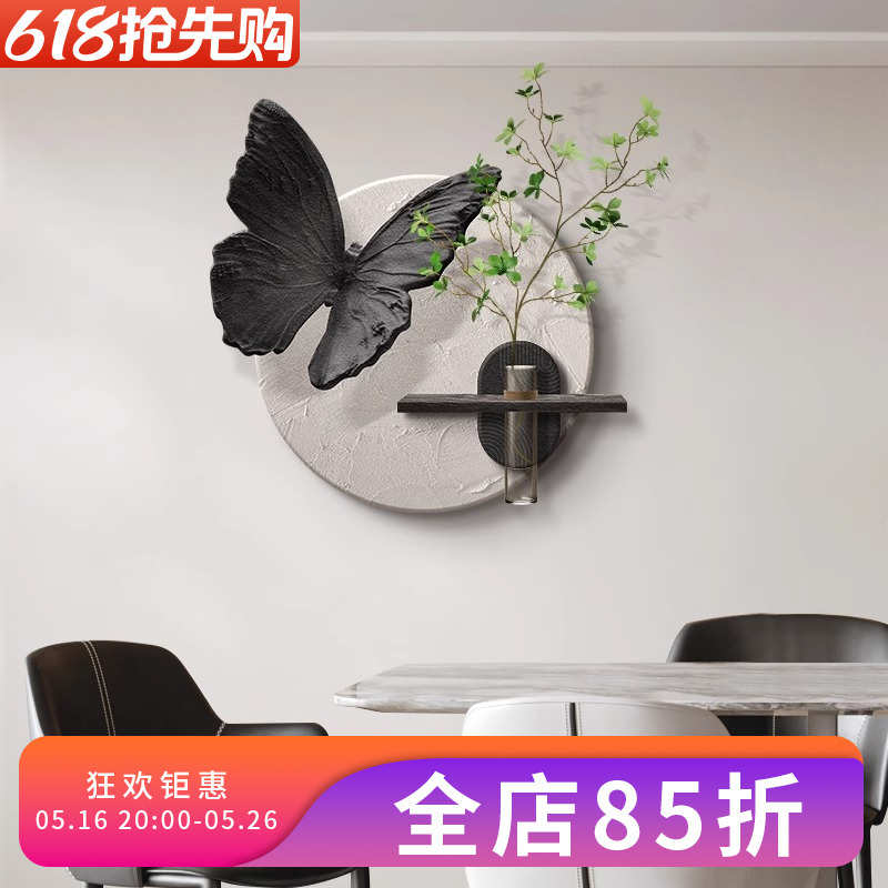 黑白蝴蝶餐厅装饰画高级感抽象客厅挂画水培绿植餐桌背景墙面壁画