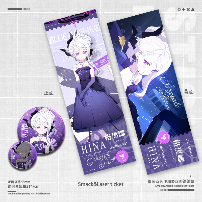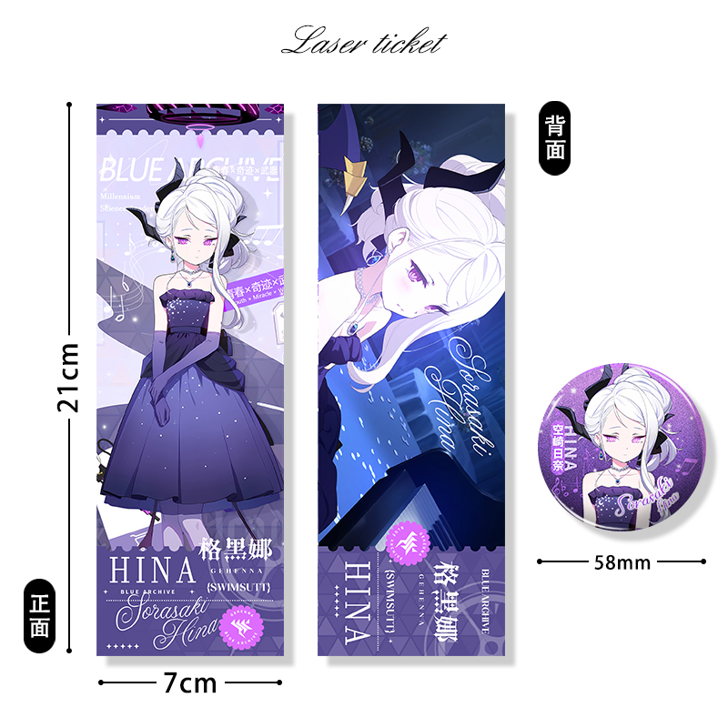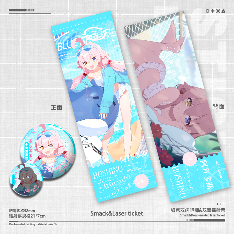 碧蓝档案礼服日奈泳装星野镭射票双面7*21cm周边双闪徽章吧唧谷子