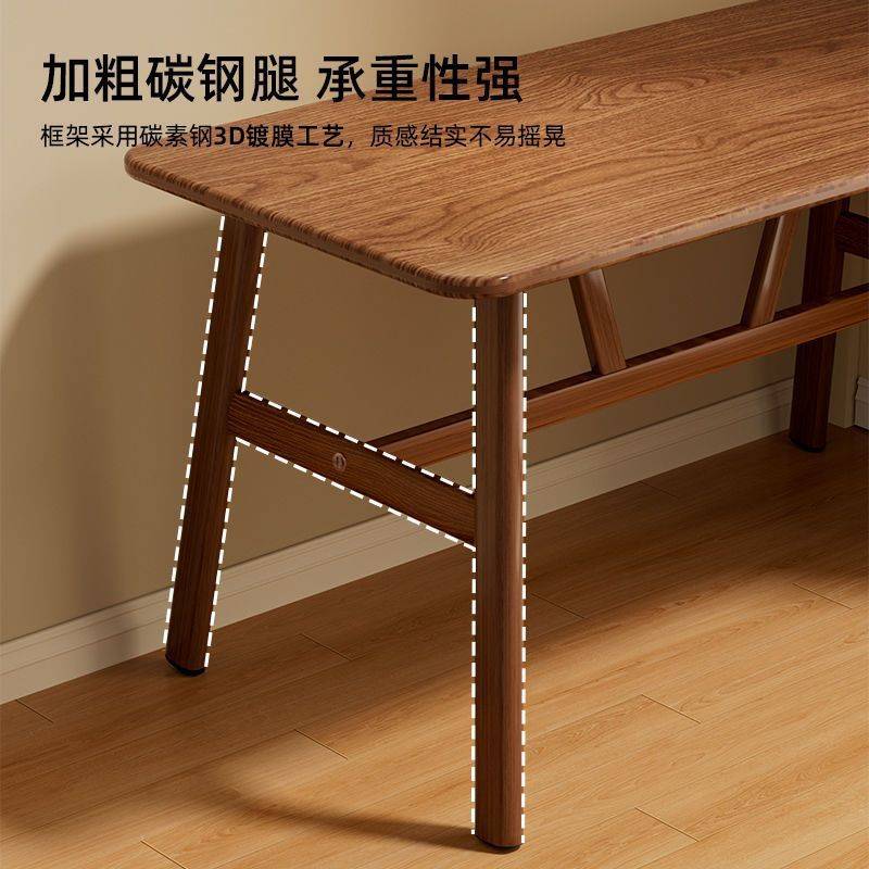 胡桃木色长方形餐桌家用电脑桌学习写字书桌小户型吃饭桌椅组合