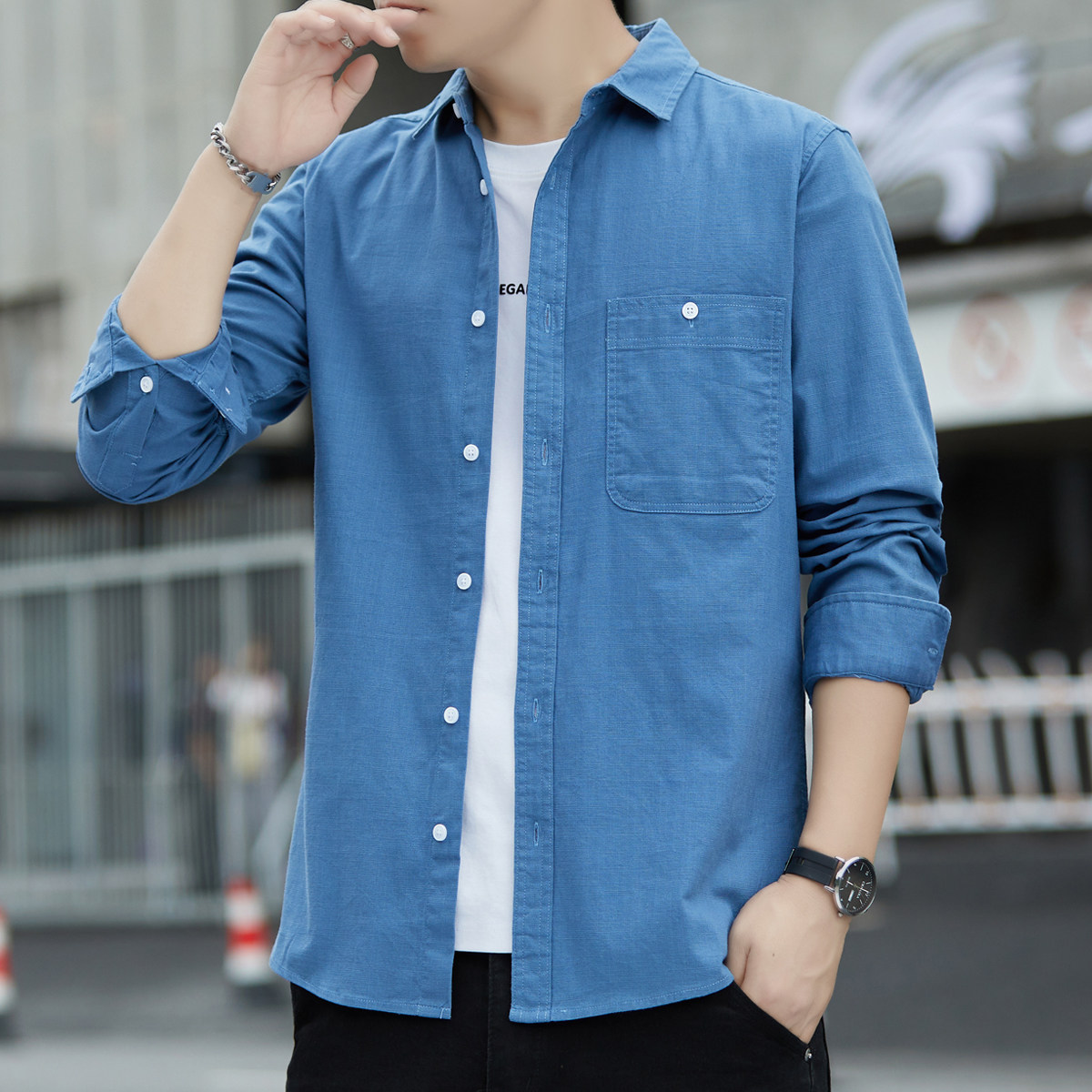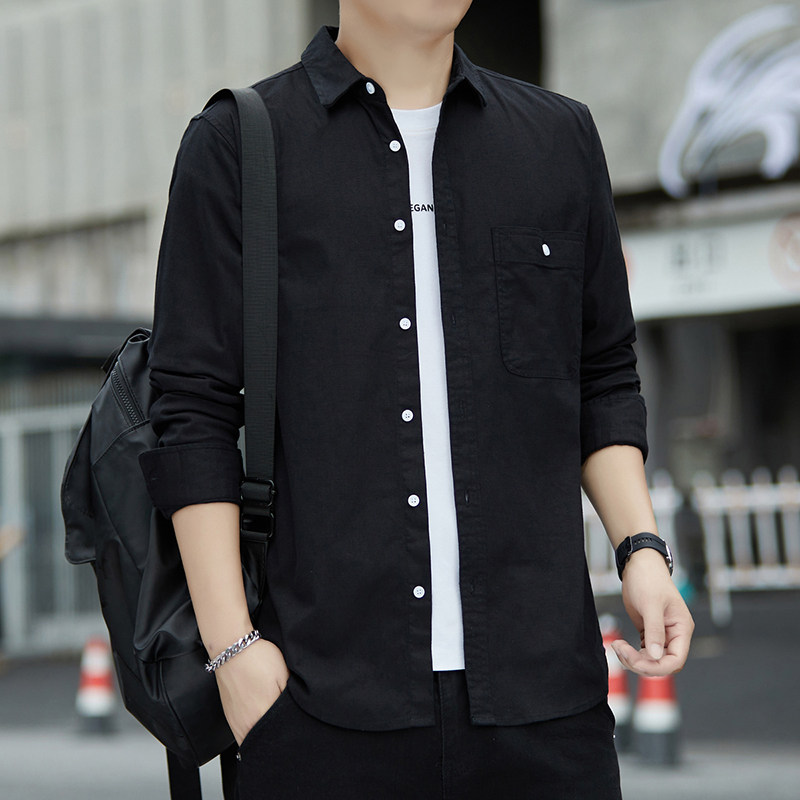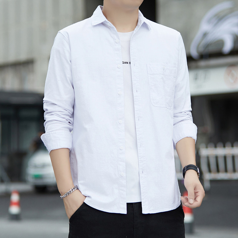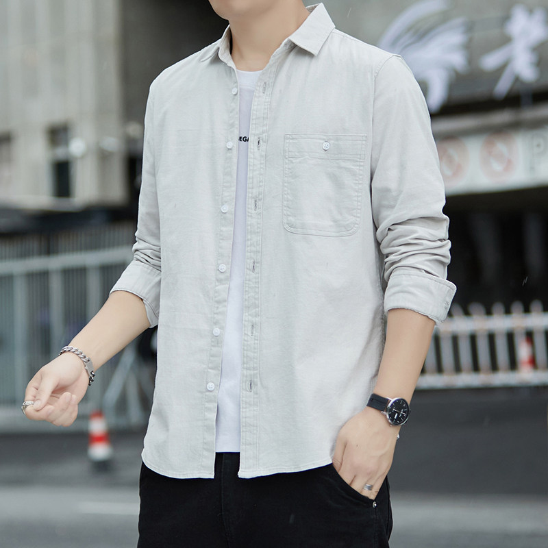 纯色工装长袖白衬衫男日系极简风春秋休闲男生微弹内搭衬衣外套寸