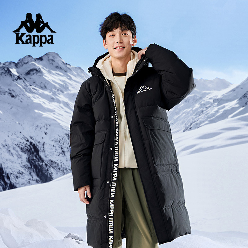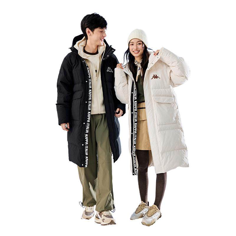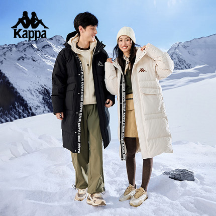 Kappa卡帕背靠背2024新款保暖运动羽绒服女连帽长款防寒服外套男