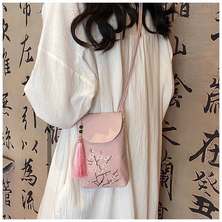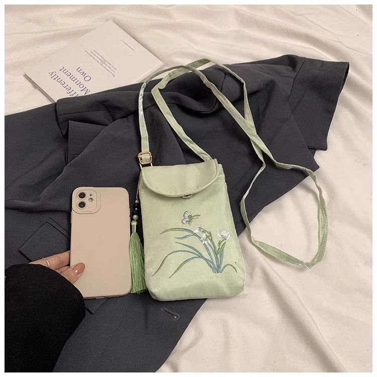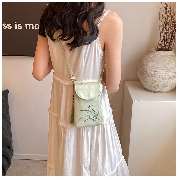 斜挎双层手机包文艺百搭国风刺绣清新小巧汉服古风翻盖小包斜挎包
