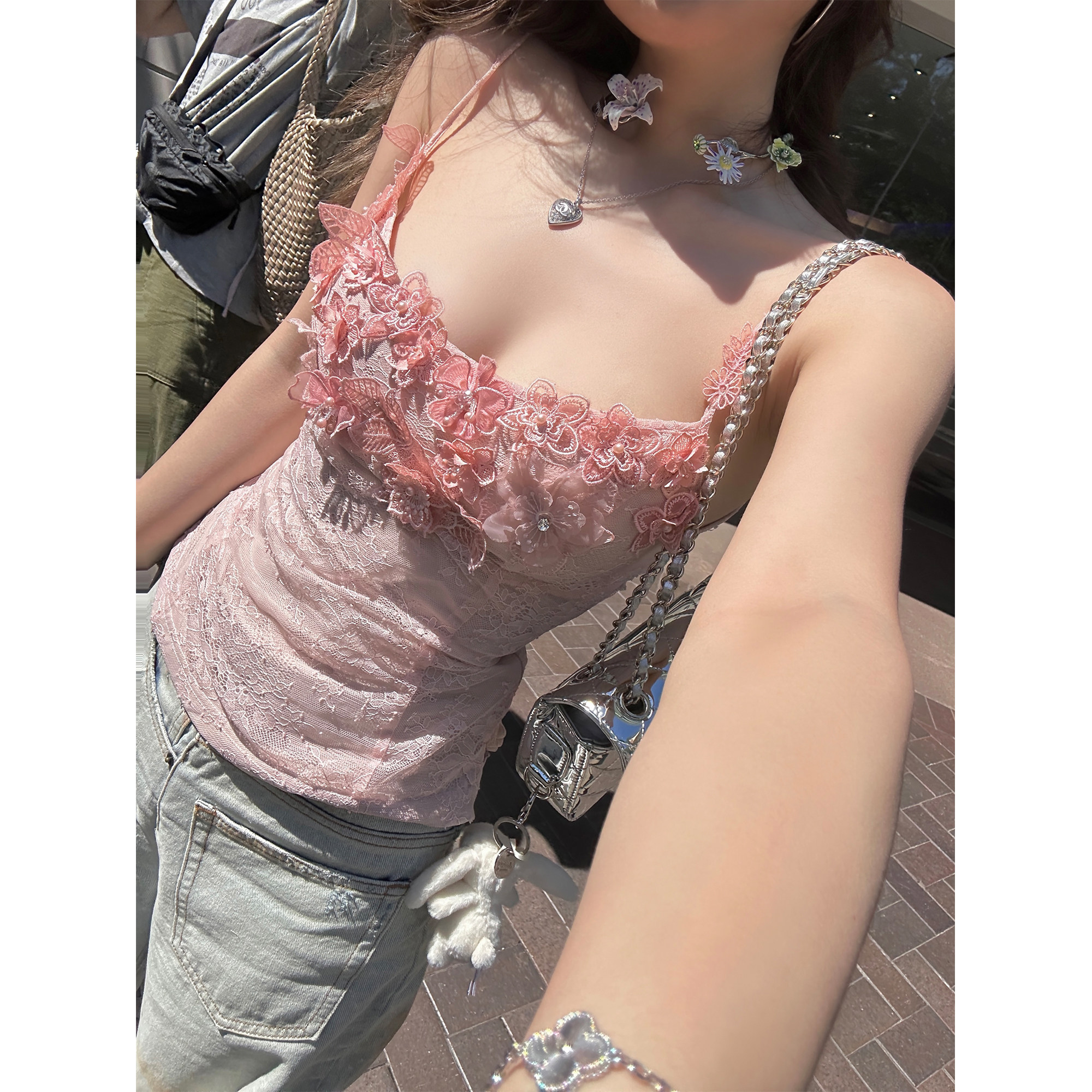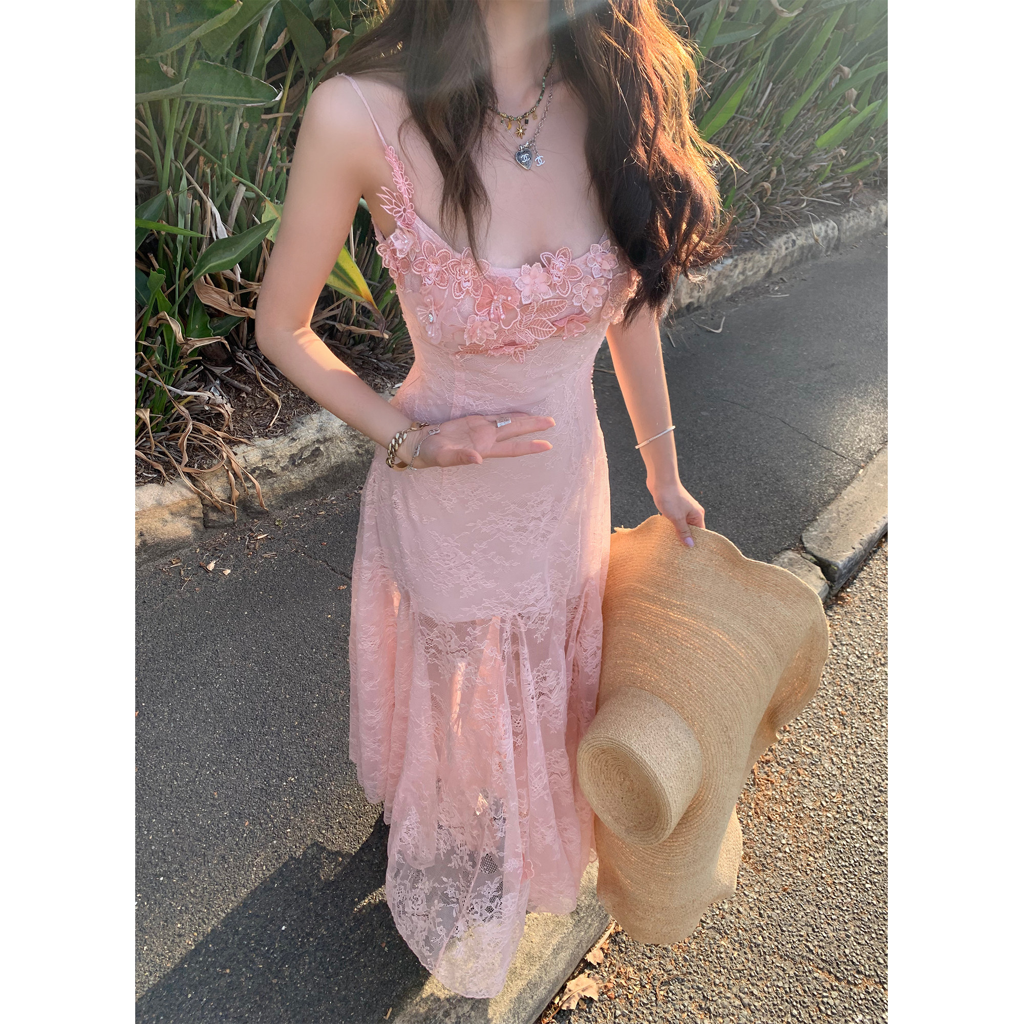 Xinlei Lin “繁花似锦”重工手工定制立体花朵蕾丝吊带/连衣裙