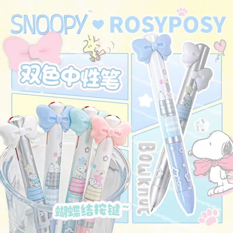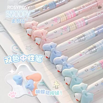 RosyPosy柔设蝴蝶结史努比双色中性笔ins高颜值可爱少女心0.5多色笔手账笔按动式多功能模板笔黑红标记作业笔