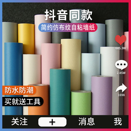 10米防水自粘墙纸纯色素色网红壁纸翻新贴画纸卧室温馨背景墙装饰