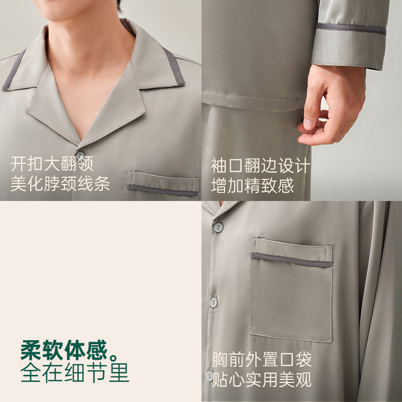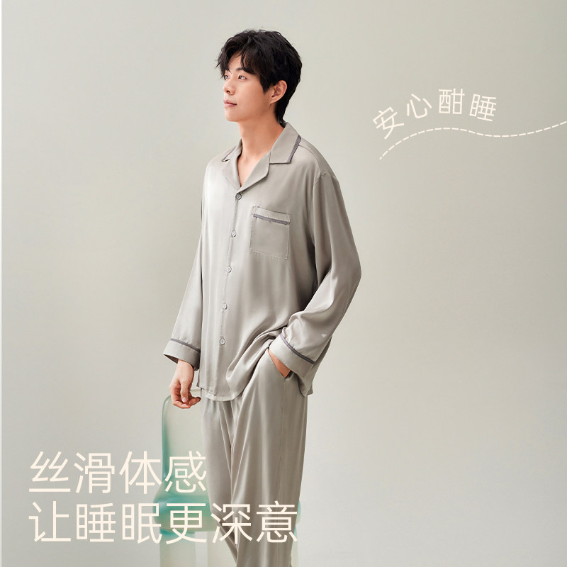 安之伴【巨柔软】男士睡衣春秋季冰丝长袖春款仿真丝绸休闲家居服