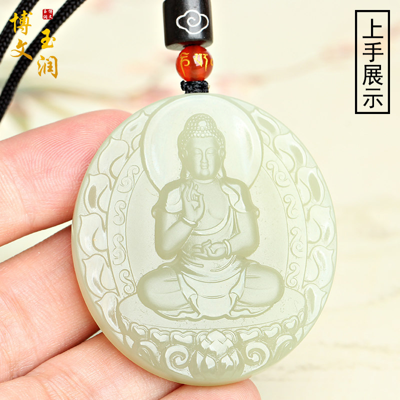 天然和田玉生肖狗猪阿弥陀佛本命佛守护神吊坠挂件男女款饰品玉佩