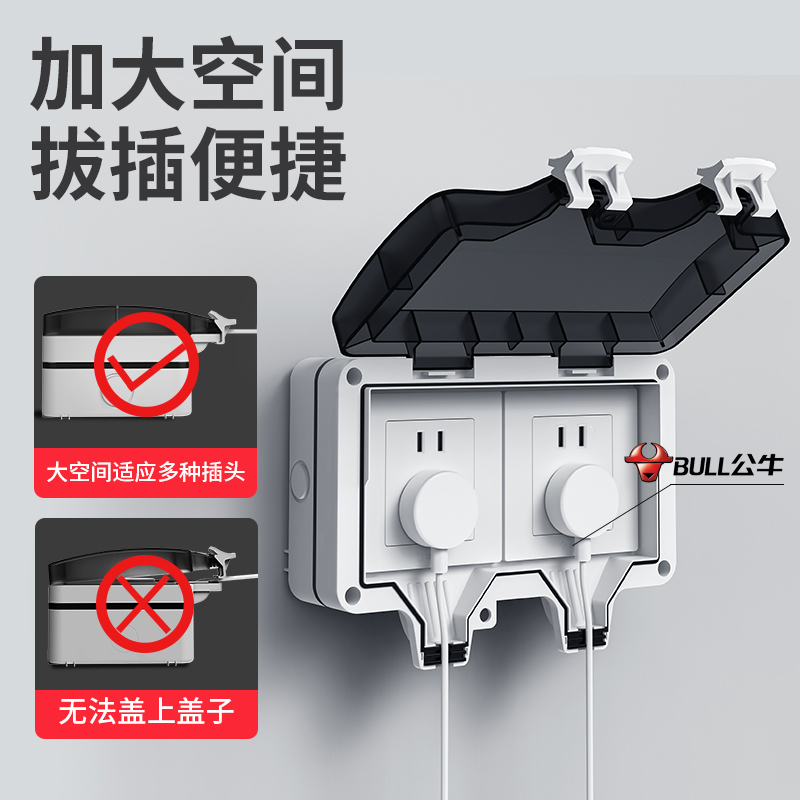 户外明装防水插座室外双86型防雨露天开关插座电瓶车充电桩电源盒