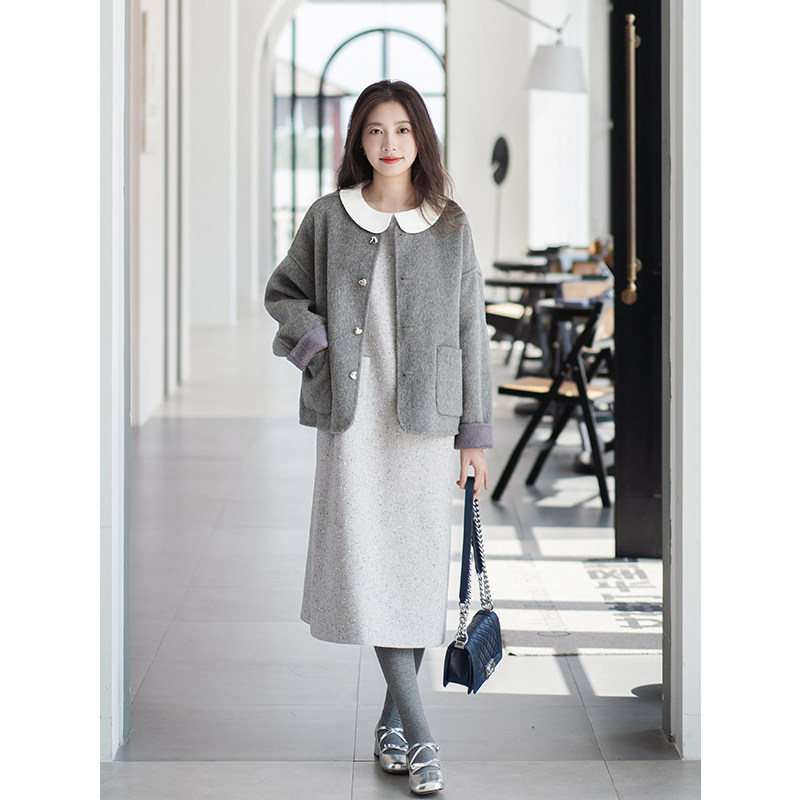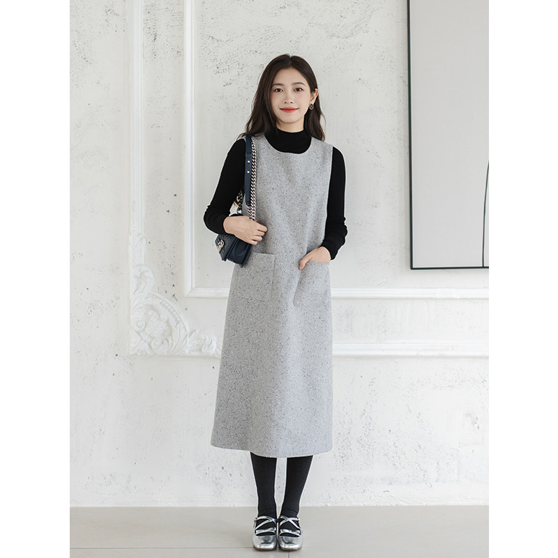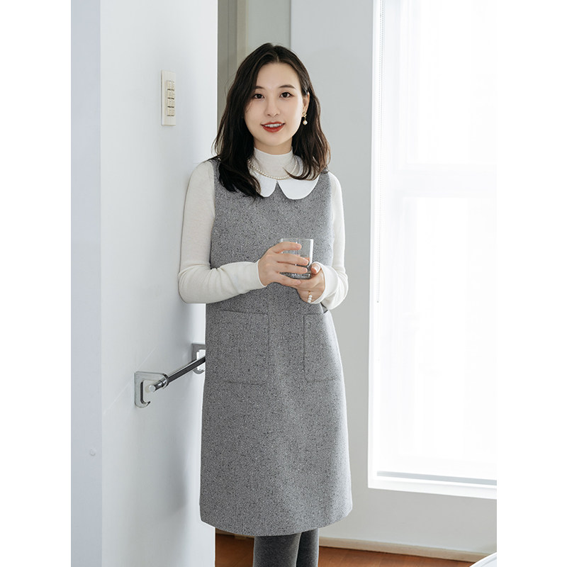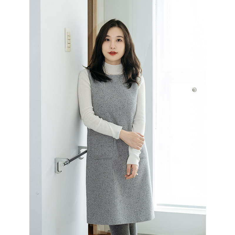 apipedream如一梦 羊毛粗花呢无袖背心裙可拆卸领连衣裙/雪花甜梦