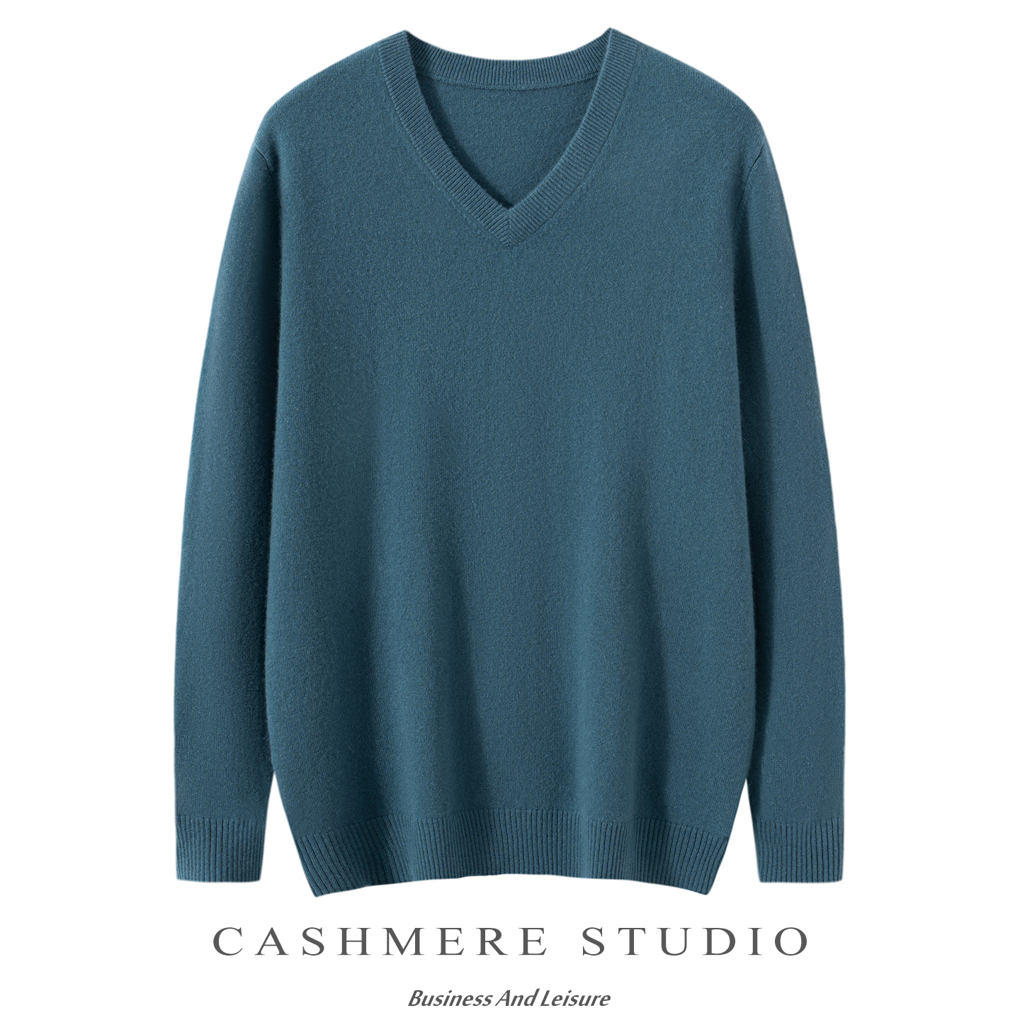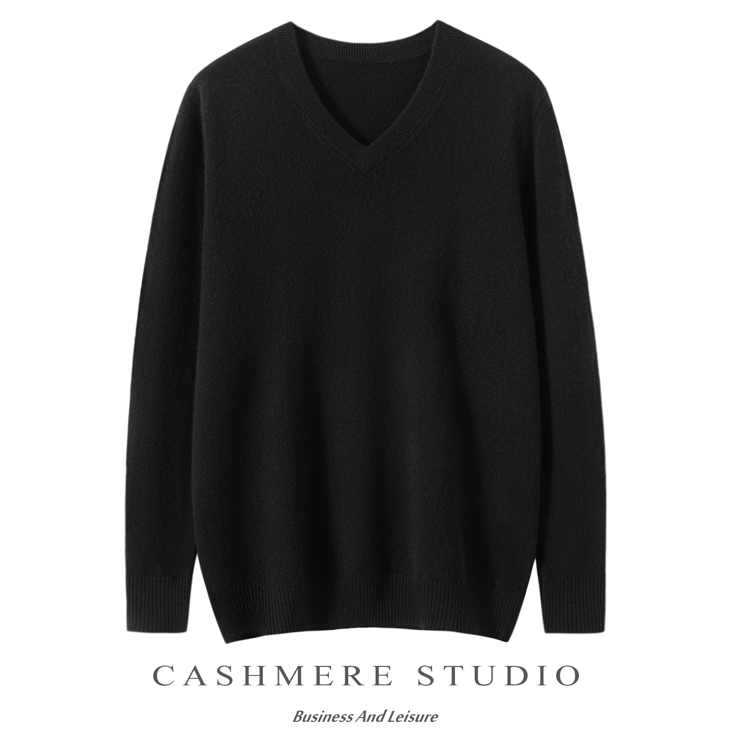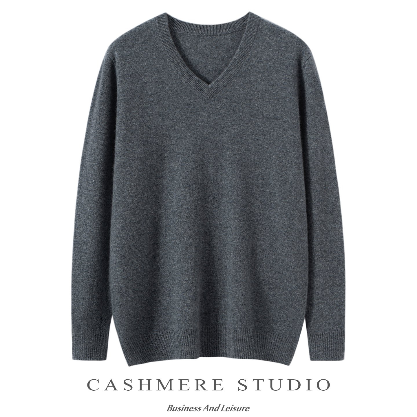 经典商务系~男士100%纯羊绒衫上衣平面V领针织基础款羊绒打底毛衣