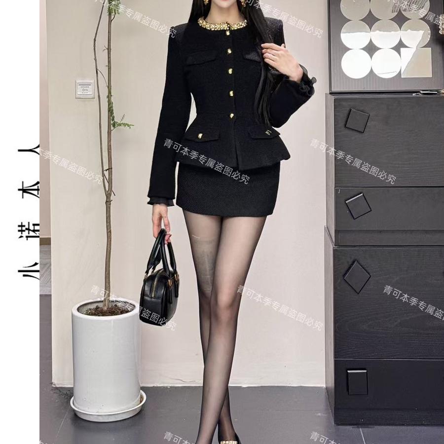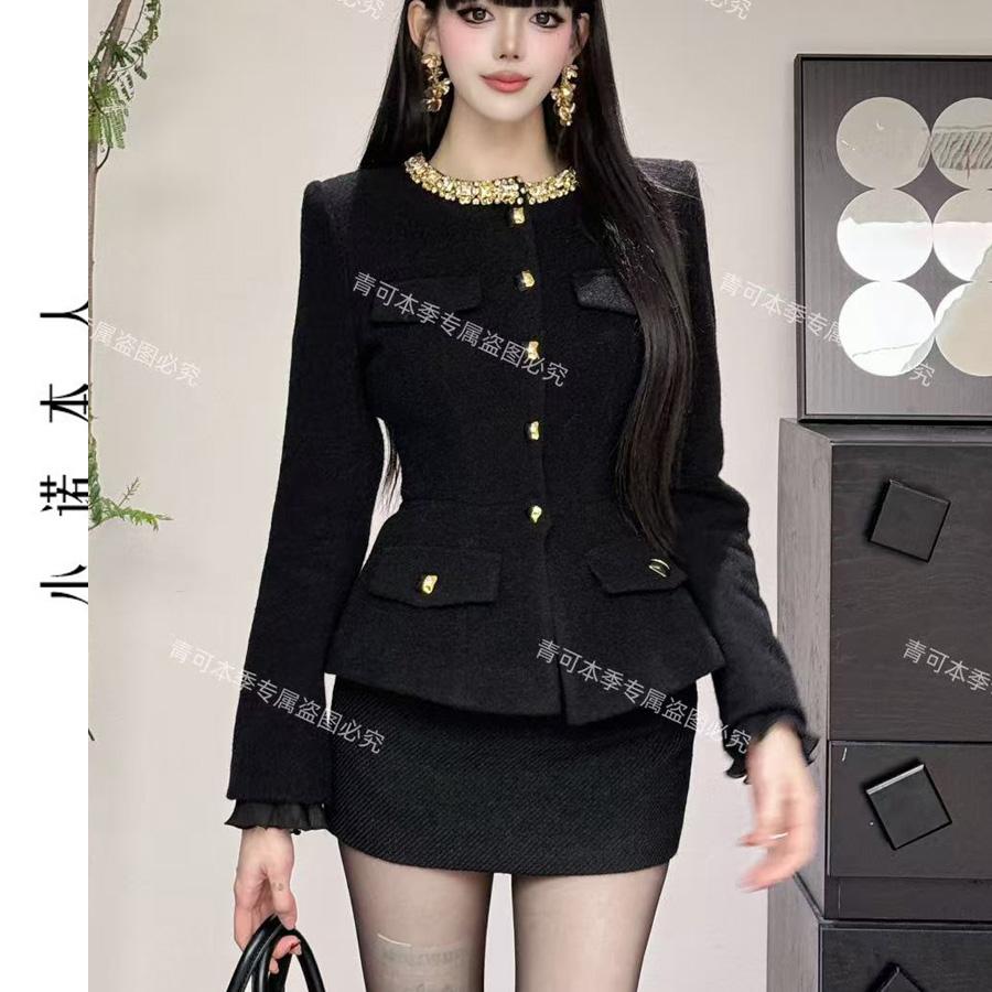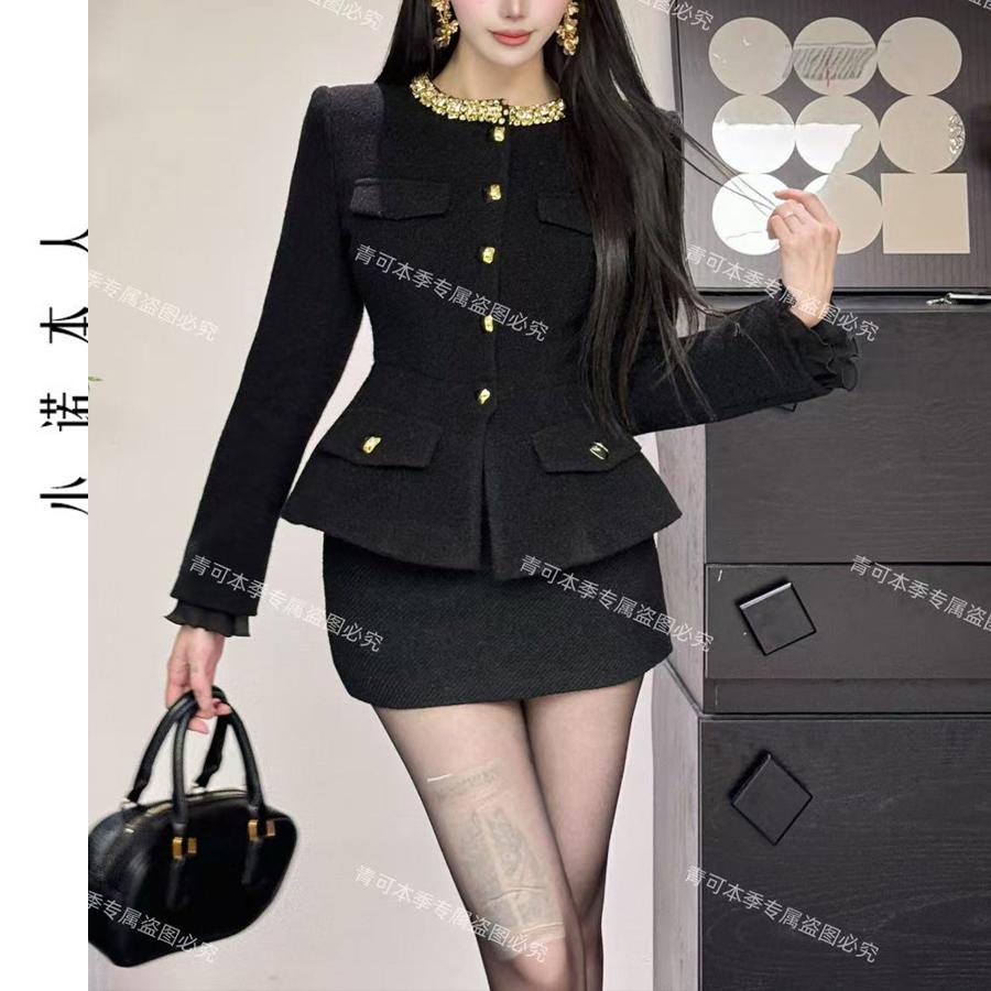 小诺本人千金感轻奢套装收腰气质名媛外套高腰包臀裙两件套241215