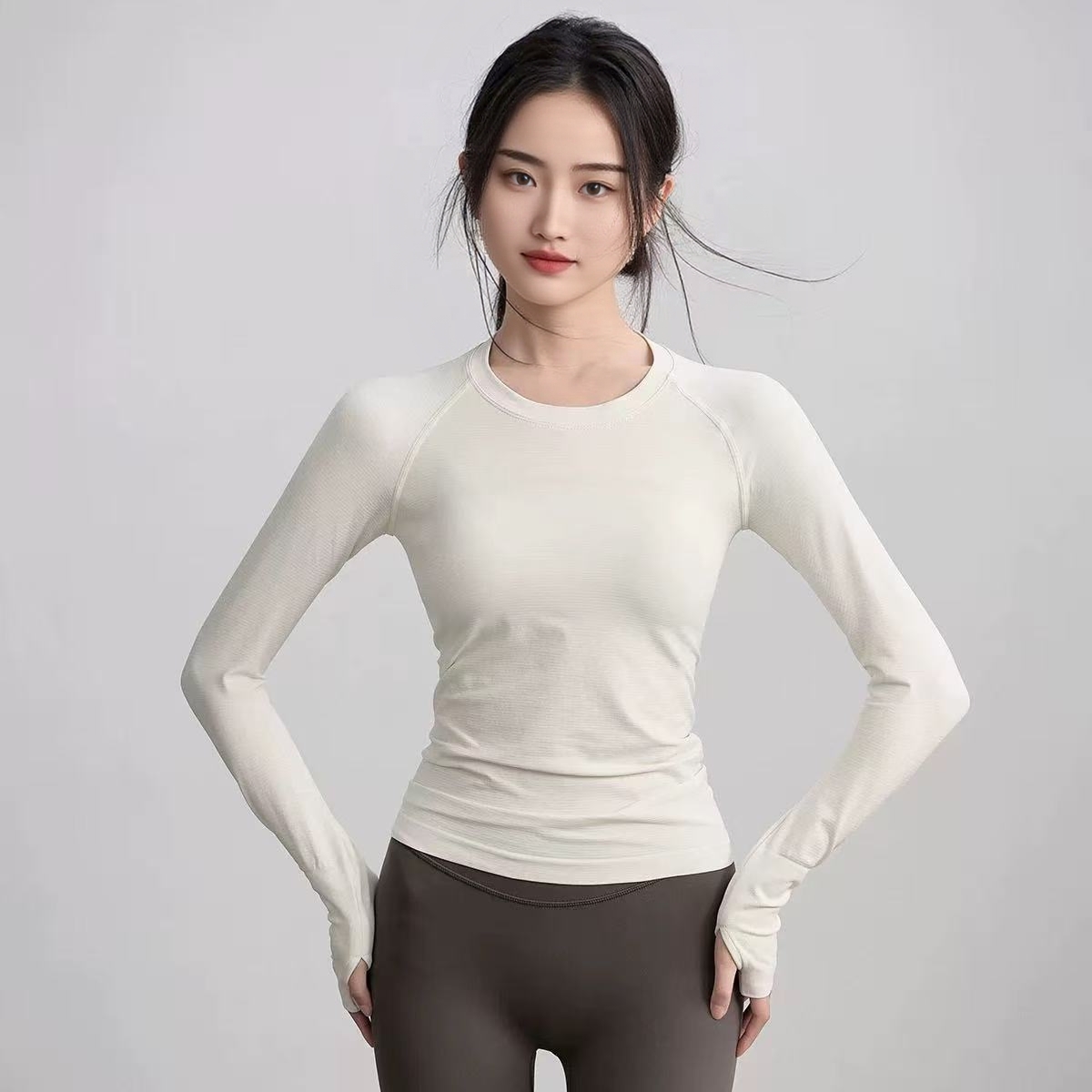 新款大牌同款运动T恤瑜伽服圆领打底上衣长袖裸感无缝舒适健身服