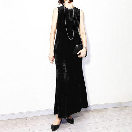 原创真丝绒鱼尾连衣裙