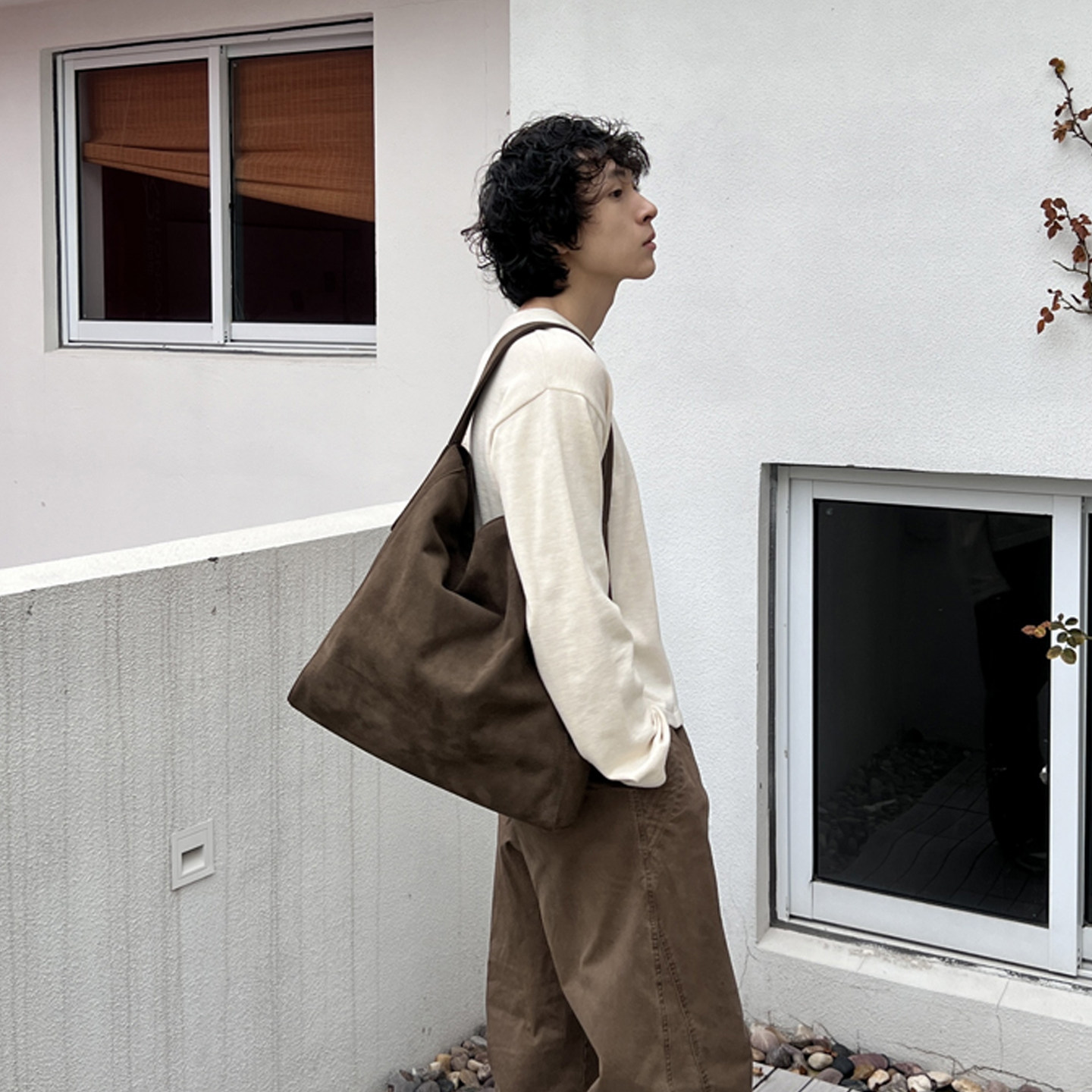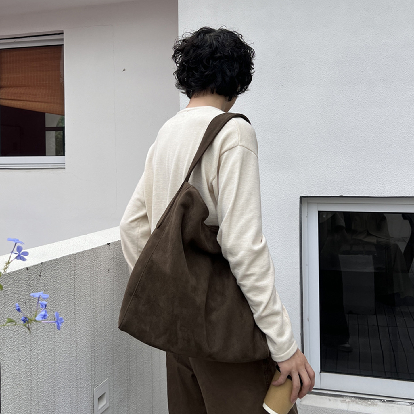 NIN设计款复古单肩单肩腋下麂皮绒hobo男女街头慵懒风手提包港风