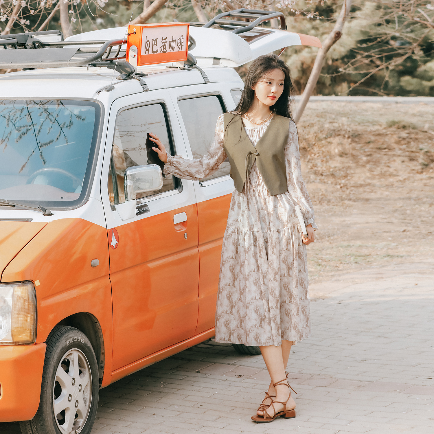 记忆的起点马夹连衣裙套装2024夏季新款碎花裙子两件套68AX88912N