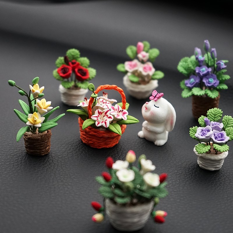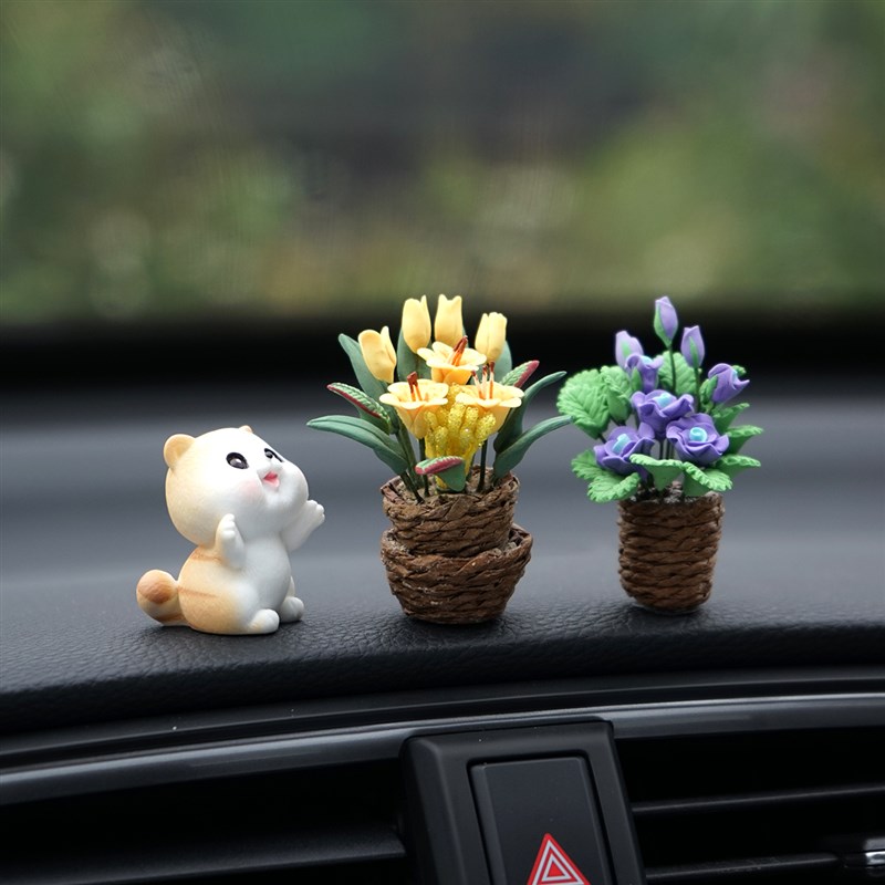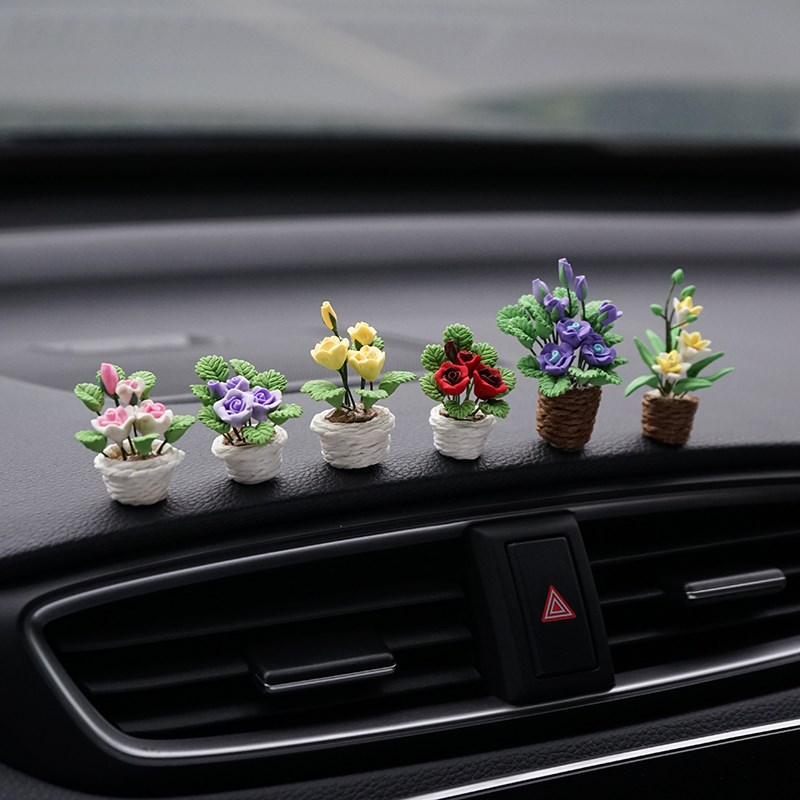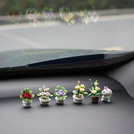 迷你编织花篮汽车小摆件创意精致陶土车载车内小花瓶中控台装饰品
