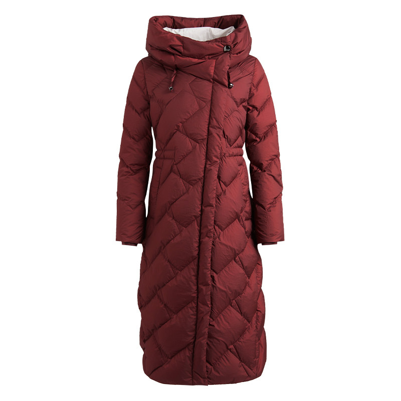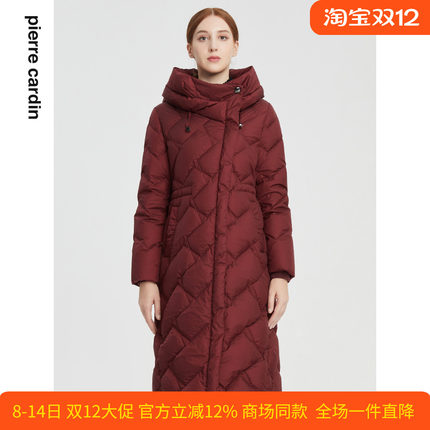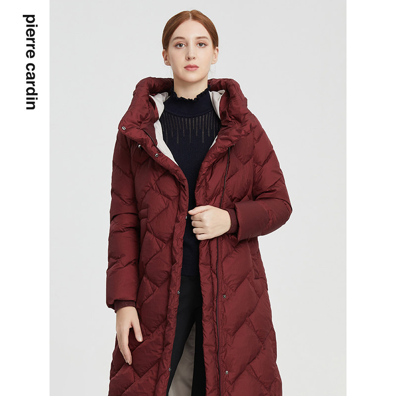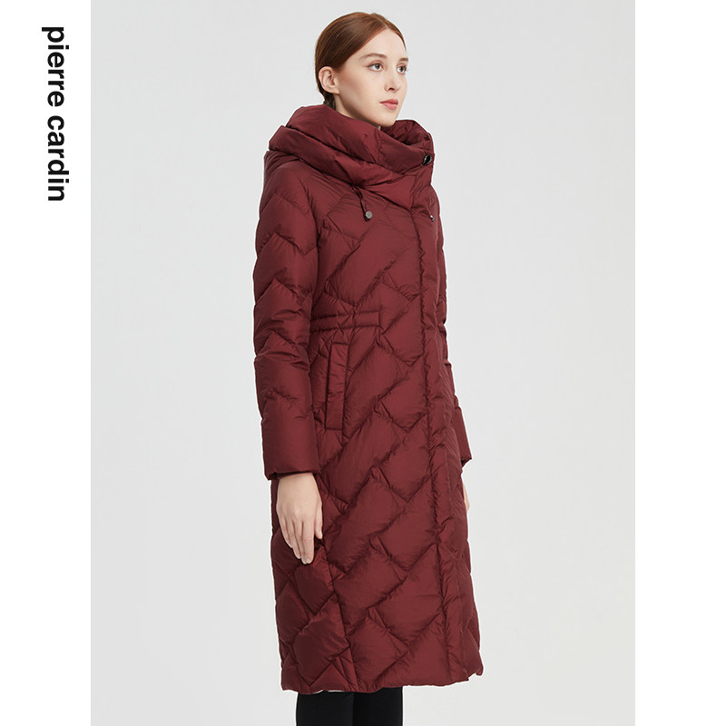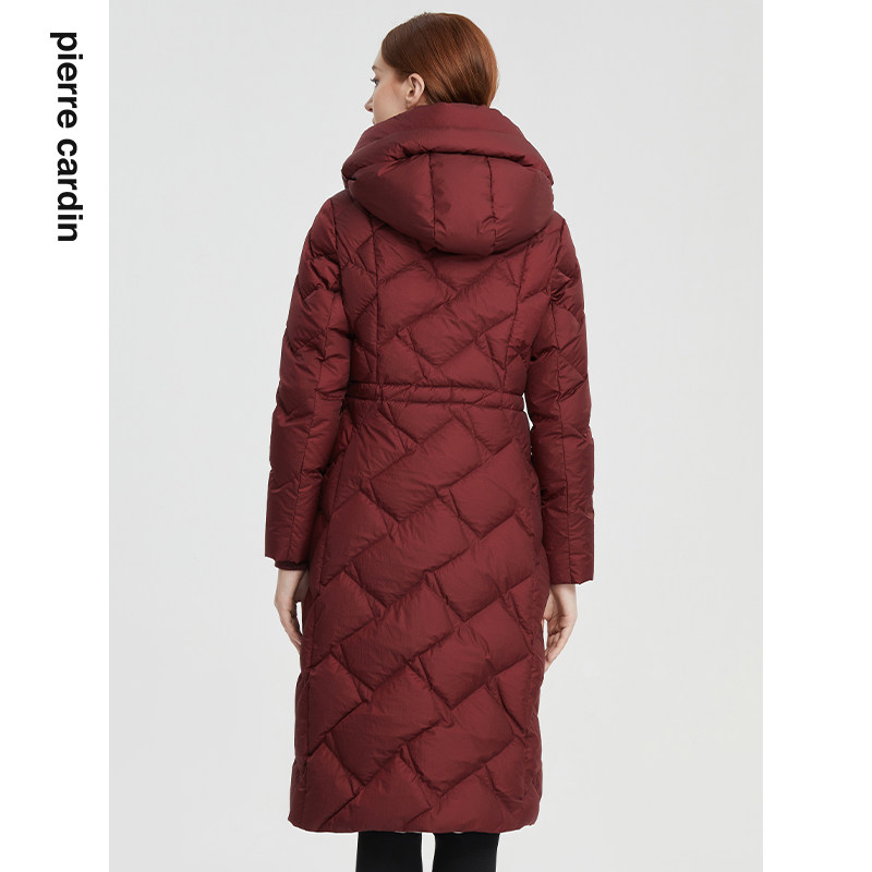商场同款皮尔卡丹女装时尚复古红保暖通勤收腰连帽羽绒服