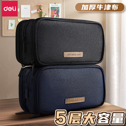 得力新款大容量多层笔袋简约文具盒铅笔盒2024男孩款小学生初中女生高颜值笔盒学生用男一年级考试专用两三层