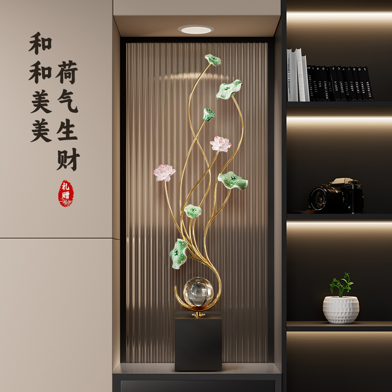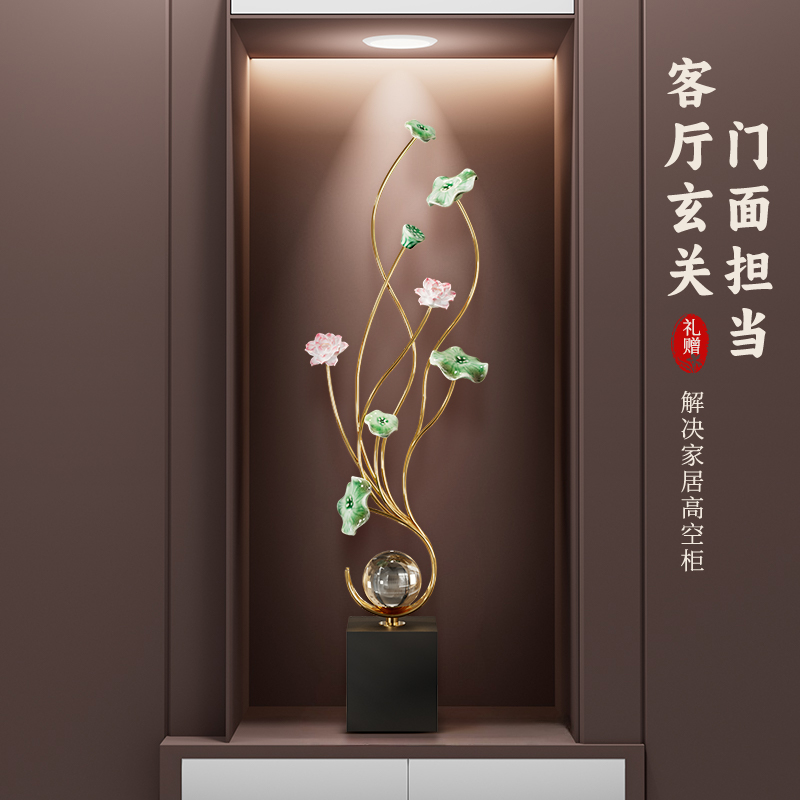 新中式玄关装饰摆件高级感电视柜壁龛展示柜装饰荷花乔迁新居礼品