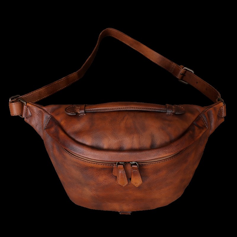 法缇斯新款手工复古真皮腰包软女士头层牛皮斜挎胸包休闲马鞍包男