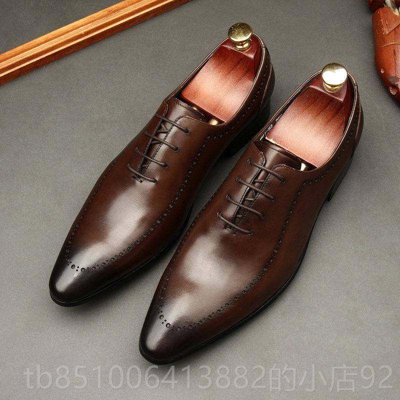 正品新款秋季布洛克男男鞋皮透气尖头雕花商务鞋正装皮鞋英伦单真