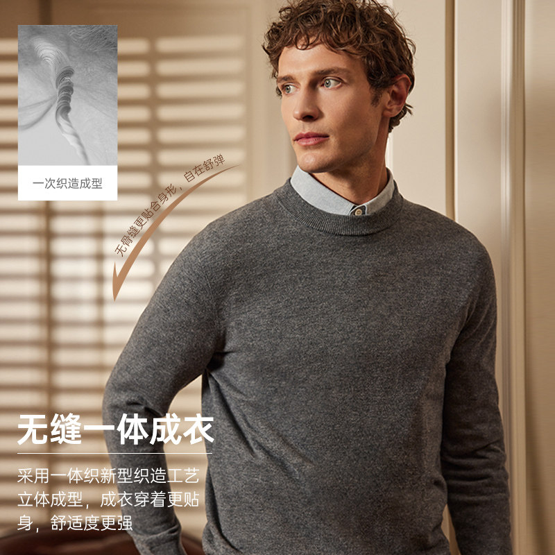 七匹狼毛衣男士官方新款秋冬季加厚黑色圆领打底针织羊毛衫男装潮