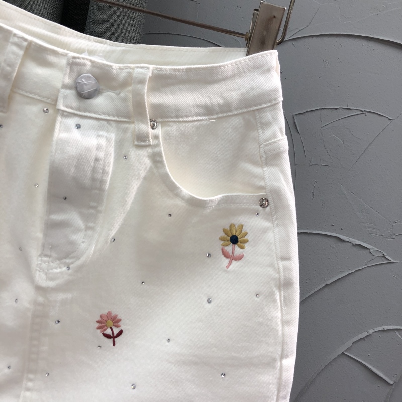 欧货白色高腰花朵刺绣牛仔短裙女夏天时尚新款百搭A字半身包臀裙