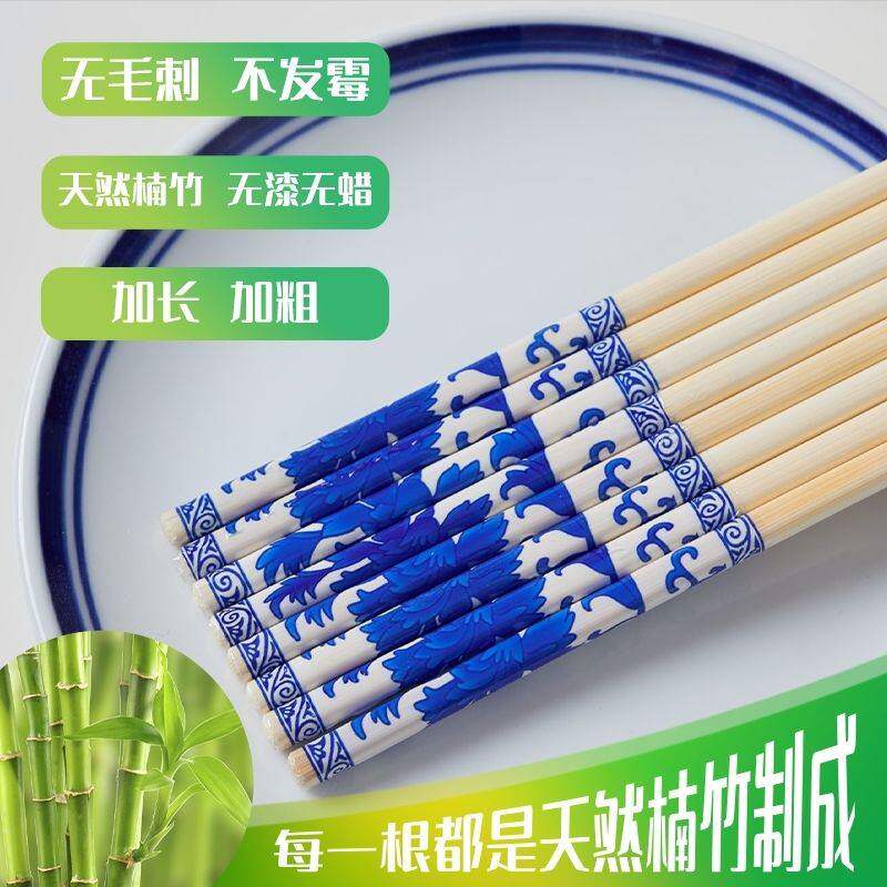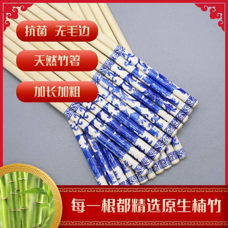 青花瓷一次性高档筷子加长加粗独立包装聚餐户外环保方便酒店家用