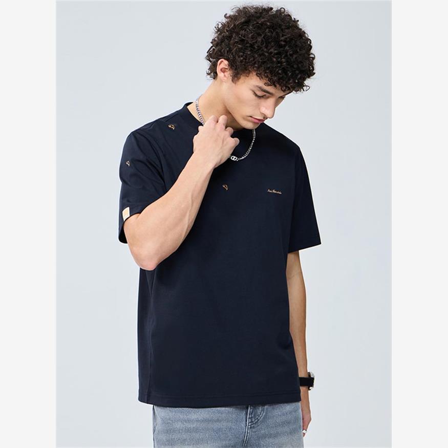 马克华飞圆领短袖t恤男士夏季新散点虎鲸刺绣个性化时髦套头衫