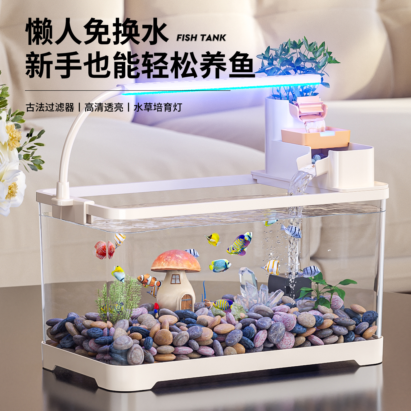古法鱼缸客厅2025新款过滤制氧一体机生态造景桌面家免换水金鱼缸