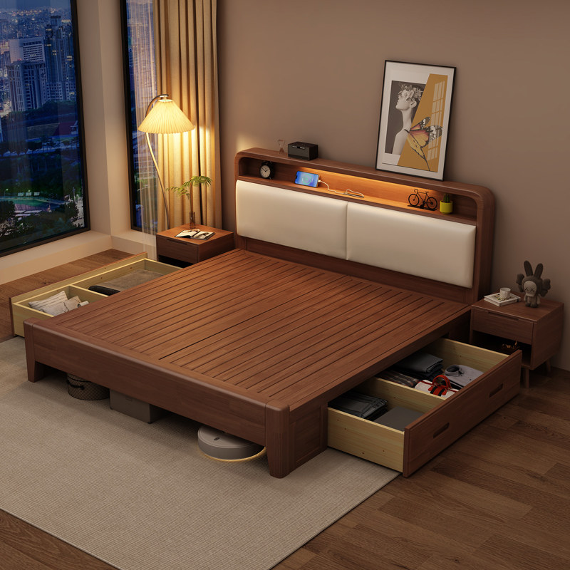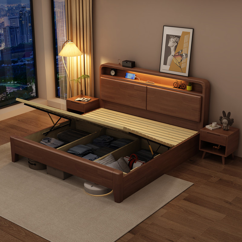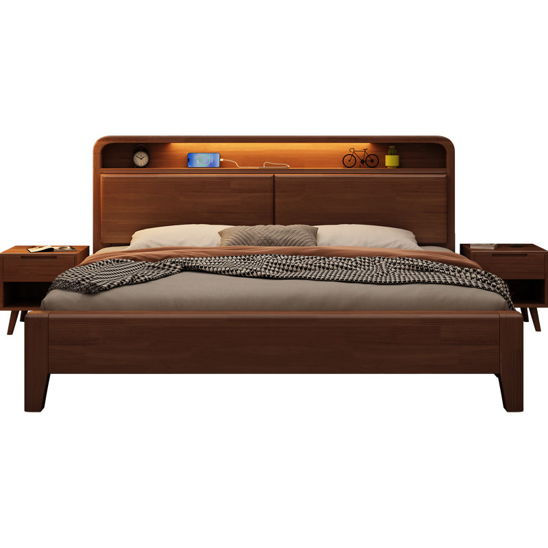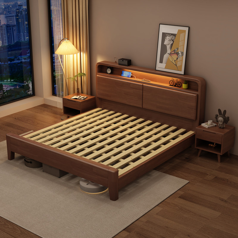 源氏木语北欧胡桃色现代简约单双人全实木床1.8米1.5主卧室经济型