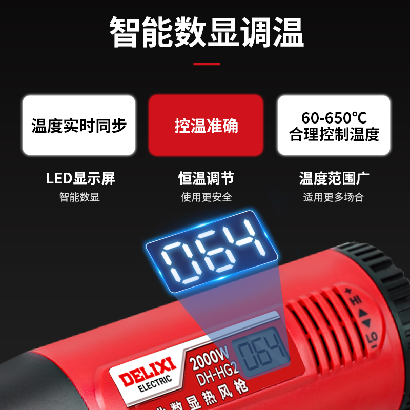 德力西电气热风枪大功率数显吹风机枪烘枪贴膜工业烤枪塑料焊枪