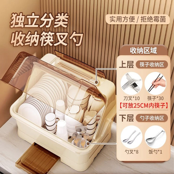 日本碗碟收纳架碗筷餐具收纳盒碗盘箱带沥水家用厨房放碗柜置物架