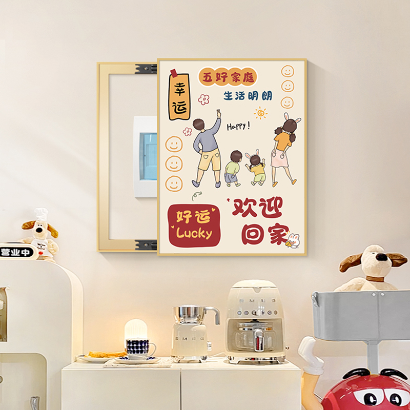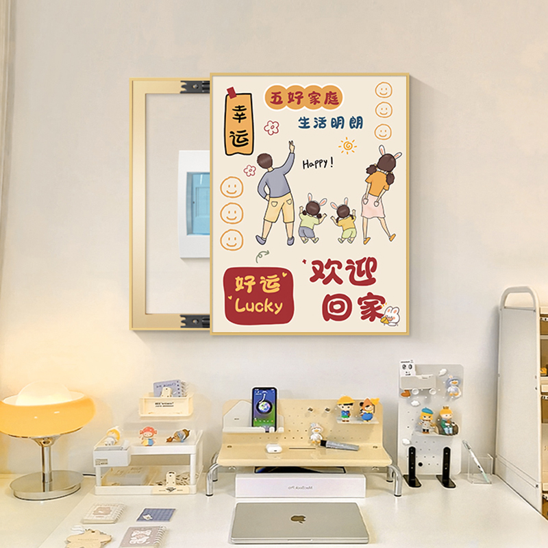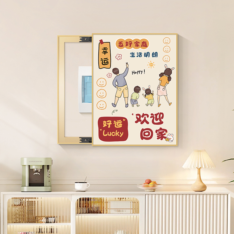 一家三四口电表箱装饰画竖版电闸箱装饰遮挡画欢迎回家配电箱挂画