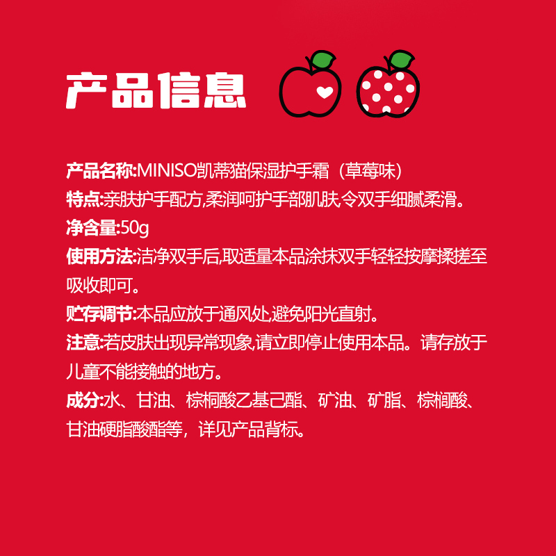 MINISO名创优品三丽鸥凯蒂猫保湿护手霜草莓味莹润丝滑滋润手霜