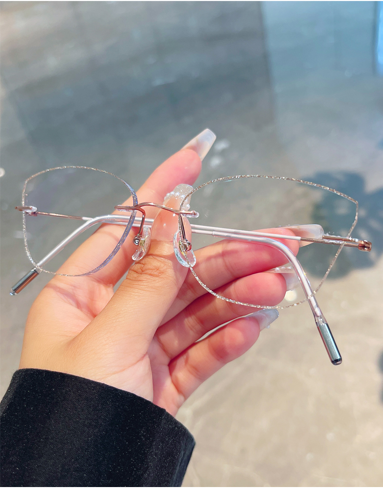 无边框镶亮片眼镜女纯钛超轻配近视散光时尚简约猫眼精致防蓝光潮