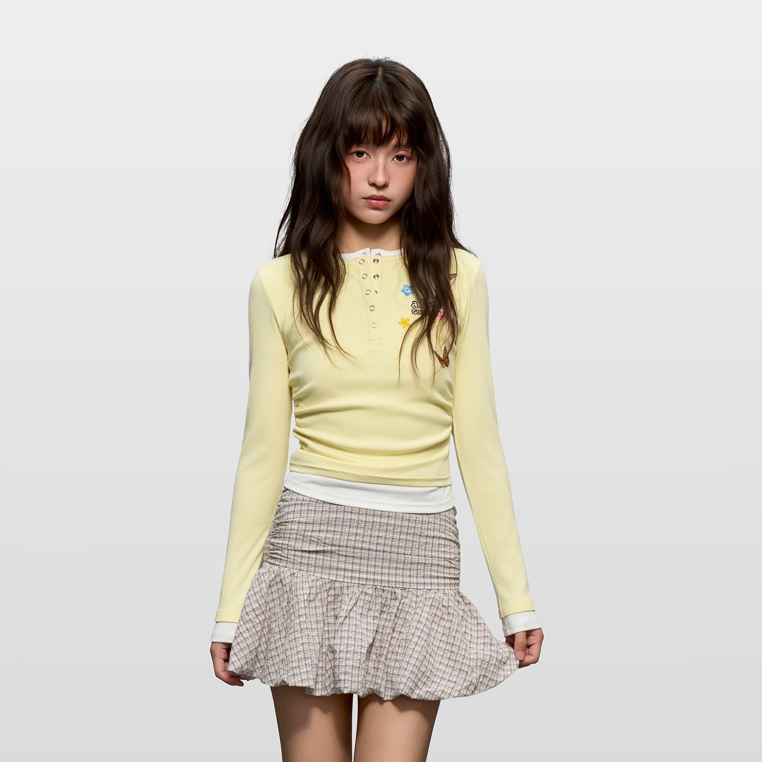 AFGK25FW利领蝴蝶刺绣假两件长袖