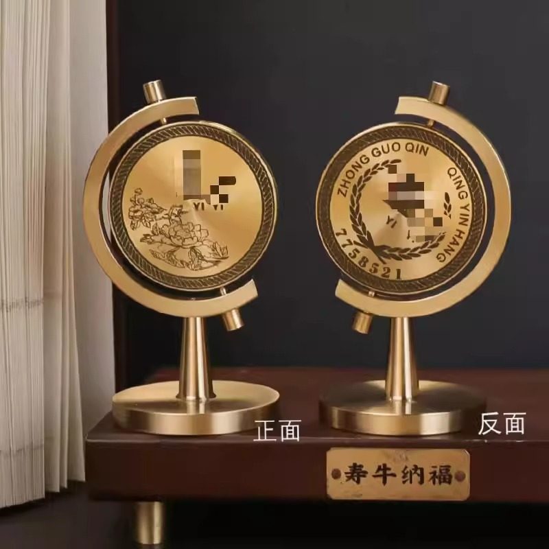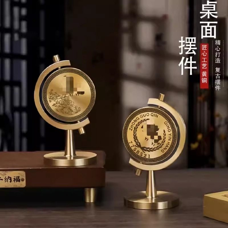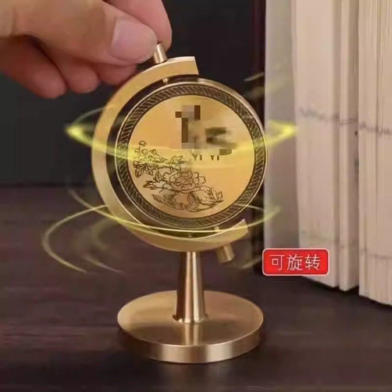 新款黄铜一个亿小目标旋转地球仪转转转车载办公桌面时来运转摆件