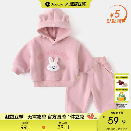 儿童卡通卫衣套装秋冬男童裤子冬季两件套宝宝衣服女宝连帽上衣潮