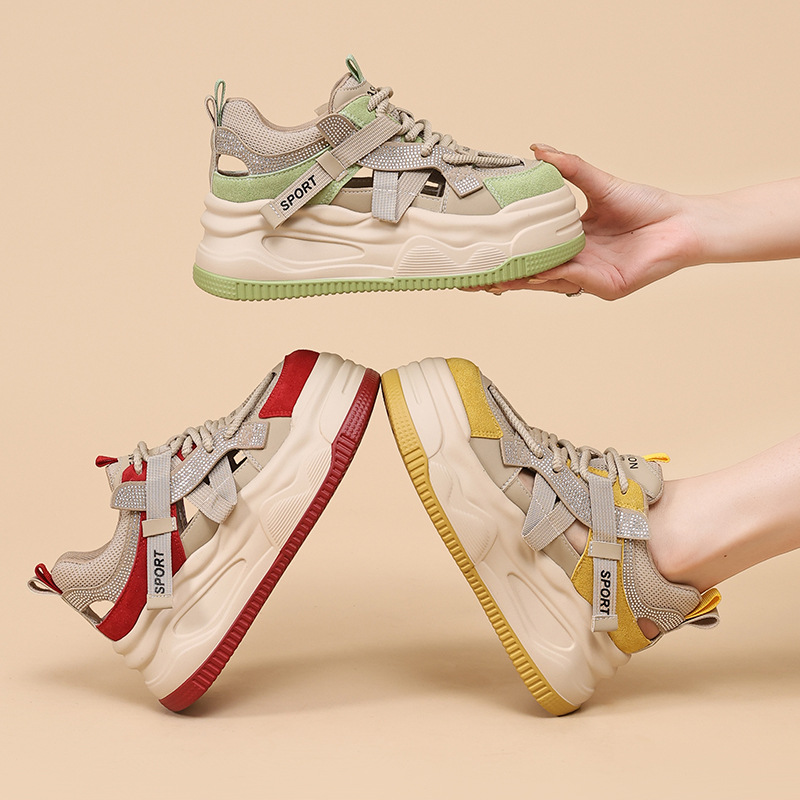 香港镂空小白鞋女2025年夏季新款水钻内增高松糕小个子厚底休闲鞋
