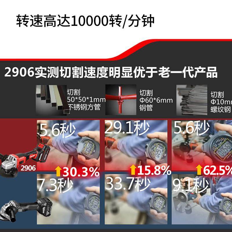 大有20V锂电无刷高转速角磨机2906高效切割打磨抛光磨光机充电式