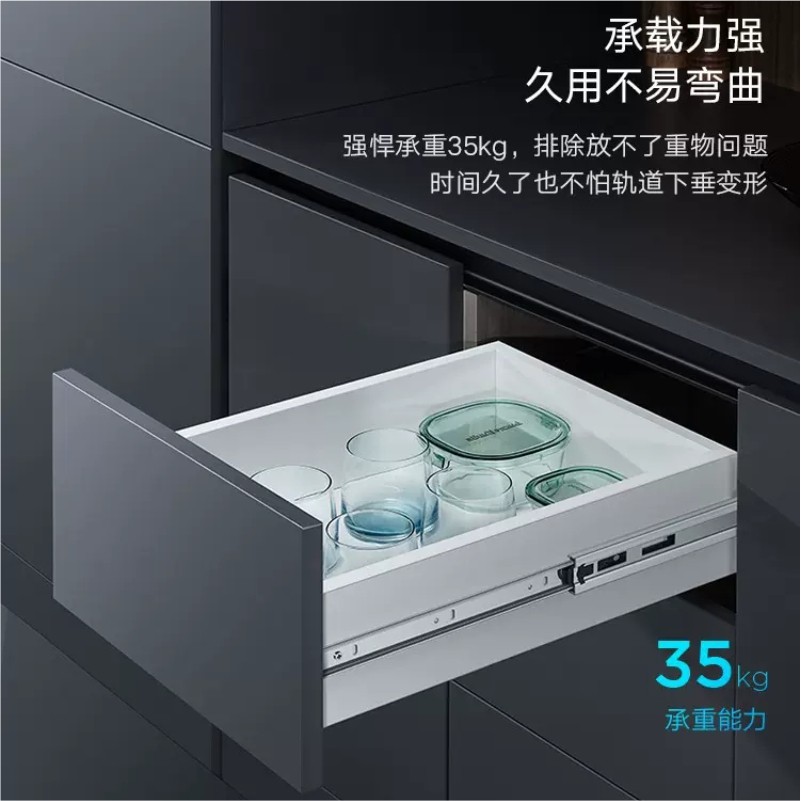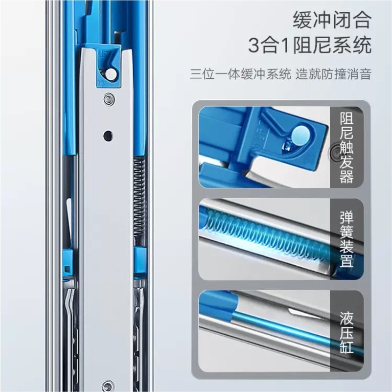 HIGOLD悍高双弹簧抽屉轨道阻尼缓冲反弹三节整体橱柜滑轨静音滑道