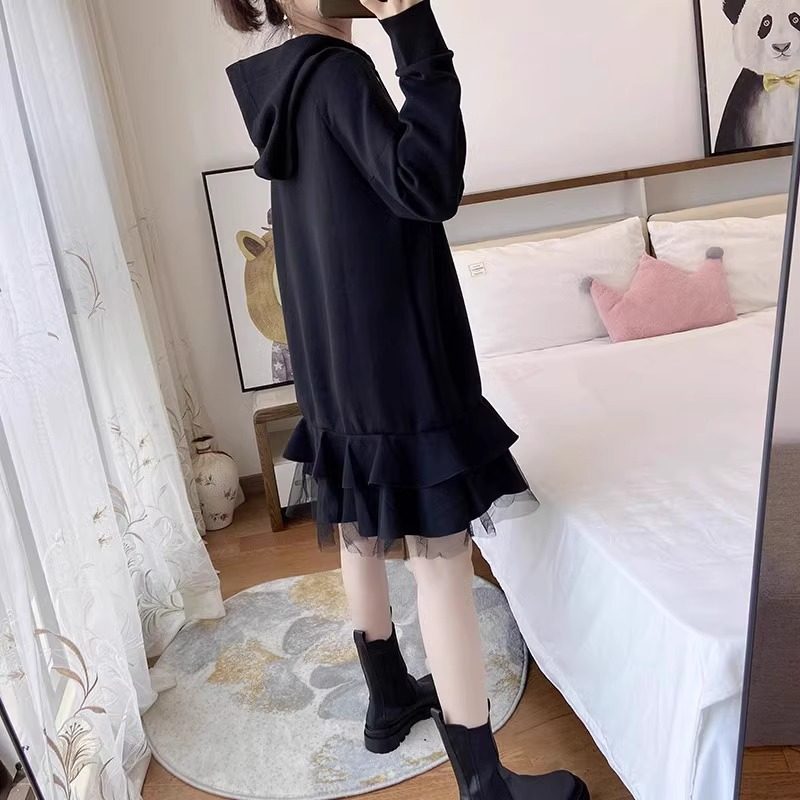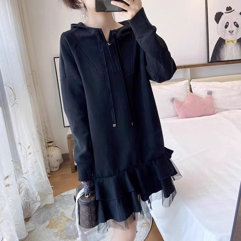 2025新款大码女装显瘦高端卫衣连衣裙胖mm黑色连帽早春减龄休闲